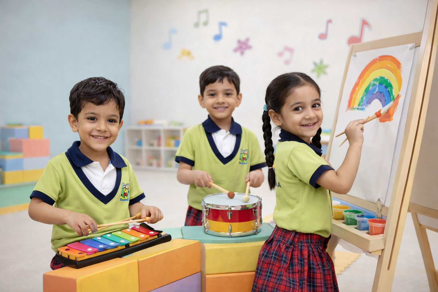 Children participate in music, art, storytelling, and outdoor play, helping them develop creativity, social skills, and confidence in a joyful learning environment.